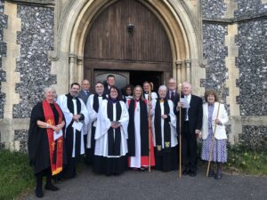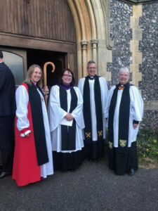 It was a really lovely service led by The Rt Rev’d Dr Jane Mainwaring, Bishop of Hertford, and The Venerable Janet Mackenzie, Archdeacon of Hertford, with assistance from Rev’d Canon Mark Dunstan, Rural Dean. With over 100 people in attendance, the church was filled and united in celebration as the Institution, Induction and Installation of Rev’d Sarah took place.