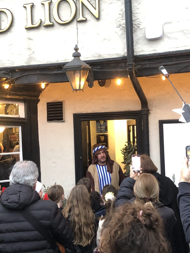 We visited inns along the way and, as always, love to see the engagement with the general public as we sing and share the nativity story. Special thanks to The Jolly Fisherman, The Oak and The Red Lion for taking part again this year. We were amazed to see our Innkeeper at The Red Lion dressed for the part – that was an extra treat!