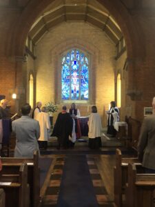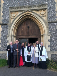 Members of the Benefice family, including Churchwardens Richard Mellor, Margaret Mellor and Peter Melrose; Assistant Churchwarden Martin Vaughan; Readers Lynne Griffiths and Rachael Melrose with Ministry Team member Anne Pulford, took part in the service in various roles. We also had John Hookway as Patron’s Representative for CPAS, along with Master Eugene du Toit and Jonathan Trower as Patron’s Representatives for Haileybury College in attendance.